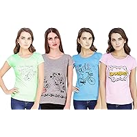 NIVIK Women's T-Shirt (Pack of 4) (CMB4-WOMEN-TSHIRT_Turquoise_Small)