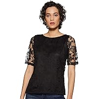 Miss Olive Women's Navy Blue Solid Lace Net Top