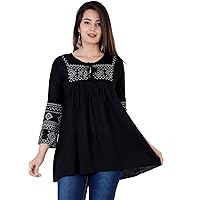MHAKAY Women's Reyon slub ofwhite Embroidered Top