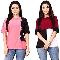 DHRUVI TRENDZ Women Printed Top with Half Sleeves for Office Wear, Casual Wear, Under 399 Top for Women/Girls Top(Black&Red)