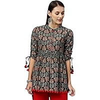 KIPEK Women's Cotton Floral Print Regular Wear Top (Black)