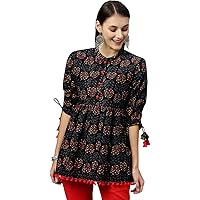 KIPEK Women's Cotton Floral Print Regular Wear Top (Black)